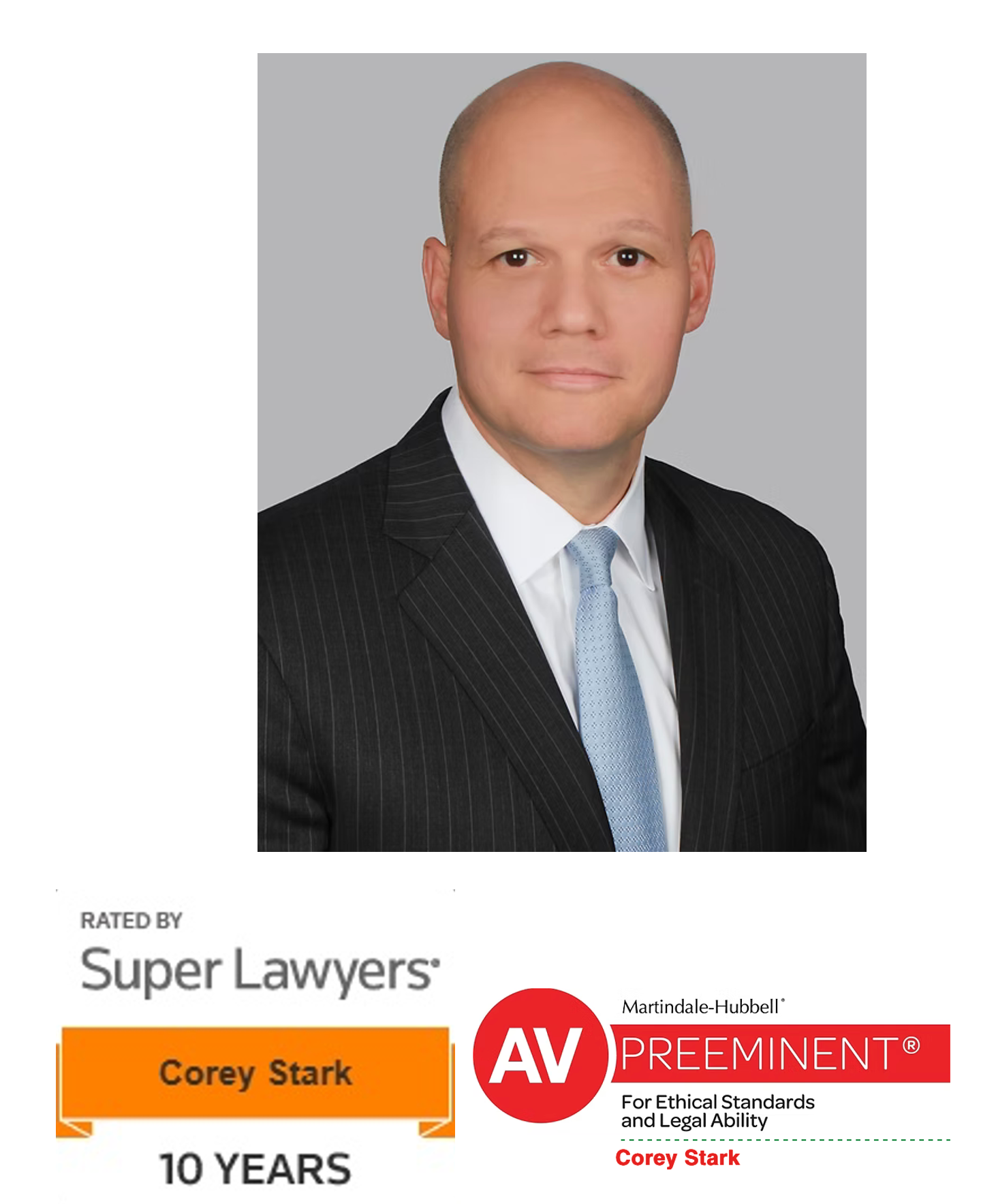 Mr. Stark is a Super Lawyer in employment litigation (2016 – 2025) and an AV-rated attorney listed on Martindale-Hubbell’s register of Pre-eminent Lawyers. Super Lawyers selects attorneys using a patented multiphase selection process. Peer nominations and evaluations are combined with independent research. Each candidate is evaluated on 12 indicators of peer recognition and professional achievement. Selections are made on an annual, state-by-state basis. AV-Preeminent is also a significant rating accomplishment and serves as an objective indicator that Mr. Stark’s peers rank him as having the highest ethical standards and professional ability.